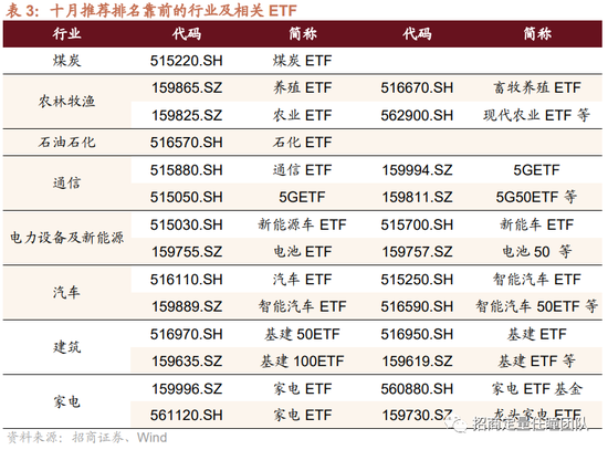 十月推荐行业及相关ETF