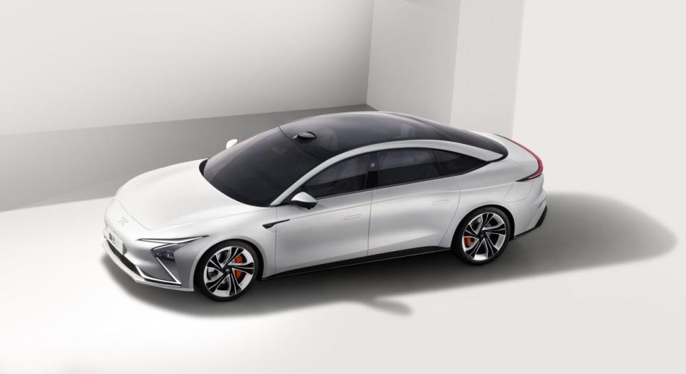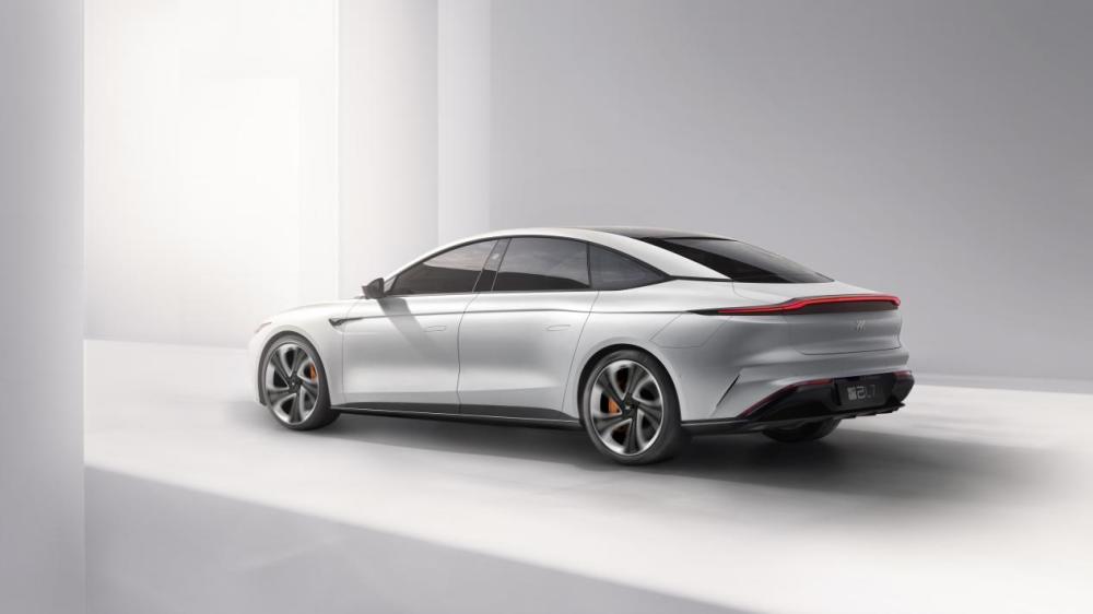 车身侧面采用了非常优美的线条,进而使风阻系数降低至0.21。悬浮式车顶设计更帮助营造出优雅的整体姿态。另外,新车的轮毂造型非常独特,黑白双拼色的五辐大尺寸轮毂极具未来科技感。