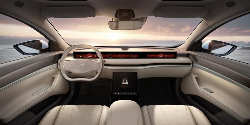 车尾部分造型较为紧凑扁平,贯穿式尾灯甚至有一丝阿斯顿马丁的既视感。车身尺寸方面,新车长宽高分别为5098/1960/1485mm,轴距3100mm。